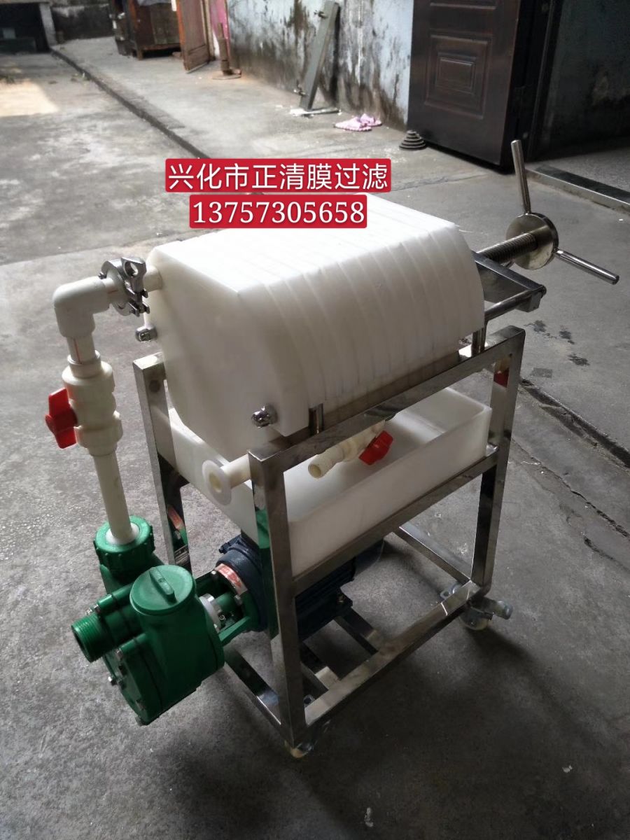 主要用途:本機(jī)廣泛應(yīng)用于制藥、化工、食品、飲料、水處理、釀造、油墨、石油、印染、環(huán)保等行業(yè),是各類液體過濾,澄清,提純處理的理想設(shè)備。特別使用于強(qiáng)酸堿物料過濾,最大過濾壓力0.3MPa,本機(jī)采用優(yōu)質(zhì)硅膠及氟膠密封圈密封,與一般壓濾機(jī)不同。可用十幾微米厚的耗材,壓緊即可。