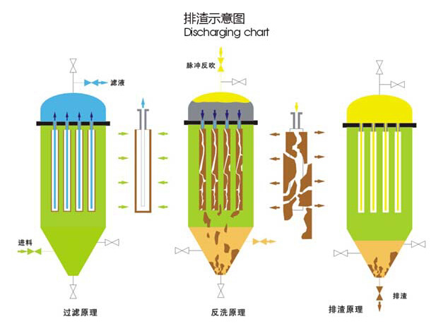 2、微孔過(guò)濾器密閉過(guò)濾,清潔化生產(chǎn);操作簡(jiǎn)便,氣動(dòng)排渣口的啟閉只要幾個(gè)閥門(mén)的操作就行;過(guò)濾管再生方便,對(duì)過(guò)濾管的反吹再生非常簡(jiǎn)便,只要開(kāi)啟反吹閥門(mén)即可完成。