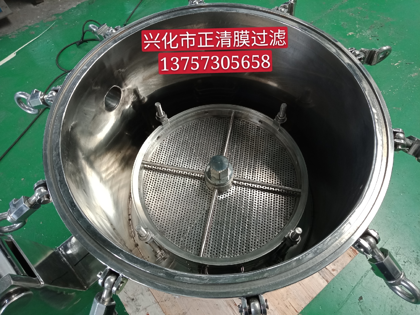 二、操作簡介: 打開容器按要求在濾網(wǎng)上、下面放入濾布(或濾膜、濾紙),上緊支桿,蓋好壓蓋,上緊法蘭羅拴使其密封。打開排氣口閥、打開進液閥原液受壓力進入過濾機中,當原液充滿過濾機后,關(guān)閉排氣口閥。過濾機內(nèi)就會保持一定的壓力,在一定壓力的作用下原液進入腔體,原液滲透過所需要細度等級的濾布(或濾膜、濾紙)即能獲得合格的濾液,微細雜質(zhì)顆粒被濾布(或濾膜、濾紙)捕捉截留在腔內(nèi),從而完成過濾工藝。在過濾過程中操作員應(yīng)注意壓力表的變化,當壓力表指針由低到高指向2kg時表示容器內(nèi)有較多物料需要打開清理。