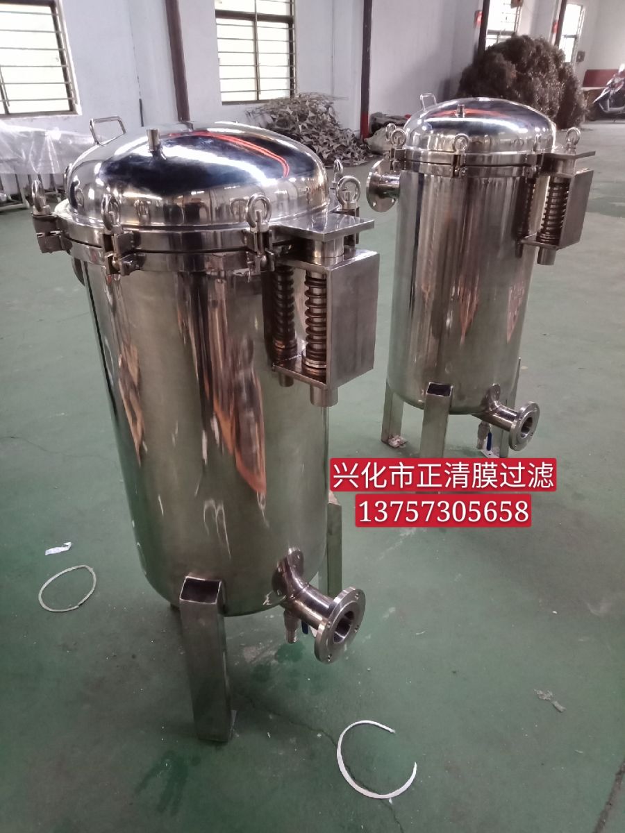 袋式過濾機是一種結(jié)構(gòu)新穎、體積小、操作簡便靈活、節(jié)能、高效、密閉工作、適用性強的多用途過濾設(shè)備。 袋式過濾機是一種壓力式過濾裝置,主要有過濾筒體、過濾筒蓋和快開機構(gòu)、不銹鋼濾袋加強網(wǎng)等主要部件組成,濾液由過濾機外殼的旁側(cè)入口管流入濾袋,濾袋本身是裝置在加強網(wǎng)籃內(nèi),液體滲透過所需要細度等級的濾袋即能獲得合格的濾液,雜質(zhì)顆粒被濾袋攔截。該機更換濾袋十分方便,過濾基本無物料消耗。