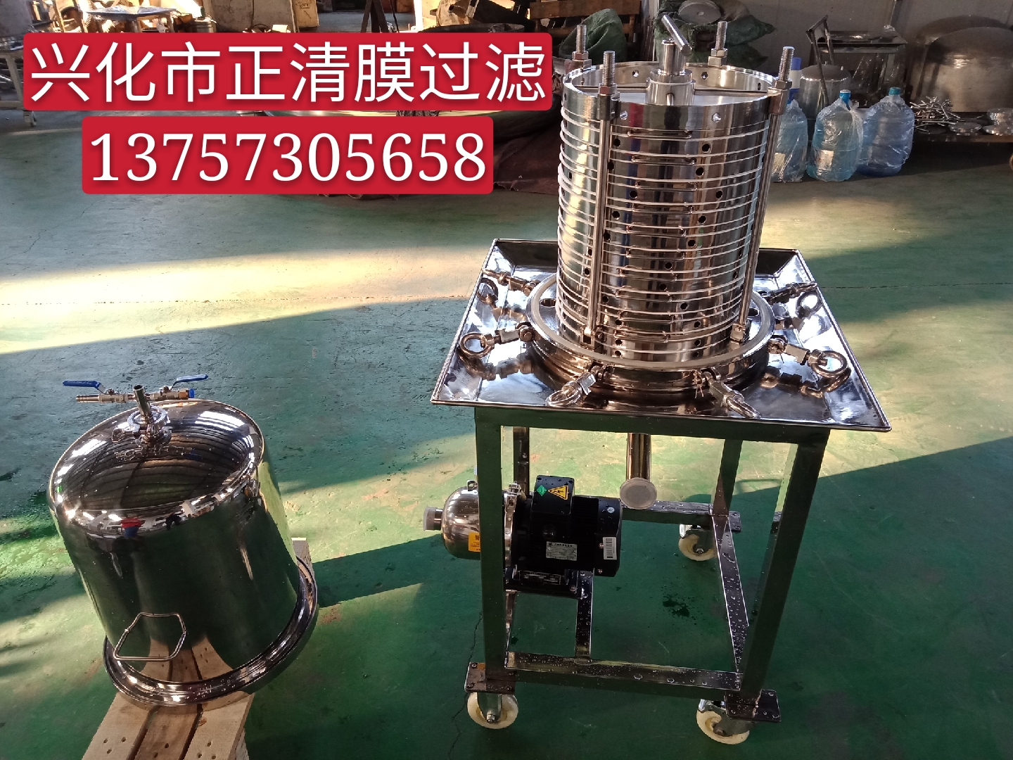 二、操作簡(jiǎn)介: 打開(kāi)容器按要求在濾網(wǎng)上、下面放入濾布(或?yàn)V膜、濾紙),上緊支桿,蓋好壓蓋,上緊法蘭羅拴使其密封。打開(kāi)排氣口閥、打開(kāi)進(jìn)液閥原液受壓力進(jìn)入過(guò)濾機(jī)中,當(dāng)原液充滿過(guò)濾機(jī)后,關(guān)閉排氣口閥。過(guò)濾機(jī)內(nèi)就會(huì)保持一定的壓力,在一定壓力的作用下原液進(jìn)入腔體,原液滲透過(guò)所需要細(xì)度等級(jí)的濾布(或?yàn)V膜、濾紙)即能獲得合格的濾液,微細(xì)雜質(zhì)顆粒被濾布(或?yàn)V膜、濾紙)捕捉截留在腔內(nèi),從而完成過(guò)濾工藝。在過(guò)濾過(guò)程中操作員應(yīng)注意壓力表的變化,當(dāng)壓力表指針由低到高指向2kg時(shí)表示容器內(nèi)有較多物料需要打開(kāi)清理。